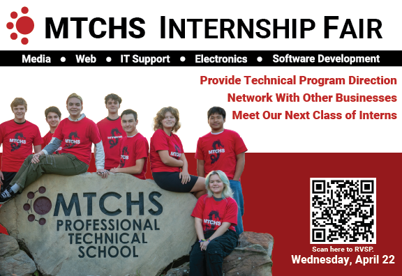 Grab a coffee and connect with our graduating seniors, MTCHS instructors, and other businesses. This is a great opportunity to share your industry experience and help students practice valuable networking skills.