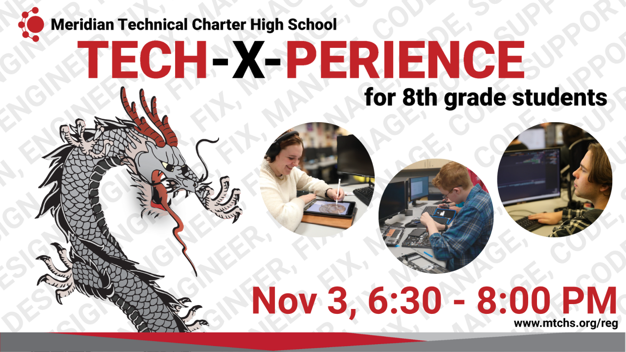 Tech-X-Perience offers eighth-grade students and their families an inside look at what makes Meridian Technical Charter High School (MTCHS) a unique and valuable option for those considering applying to this charter school.
