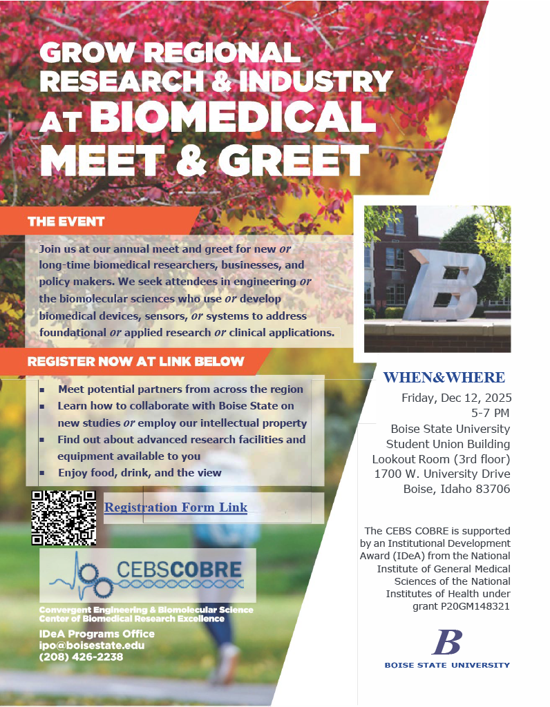 The CEBS COBRE is an NIH-funded center dedicated to advancing biomedical research capacity within Idaho, established in 2023 with an initial allocation of $10.2 million.