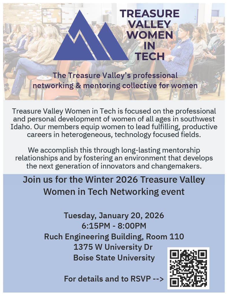 Don’t miss this chance to build connections, gain valuable knowledge, and be inspired by the incredible women shaping the future of technology here in the Treasure Valley.