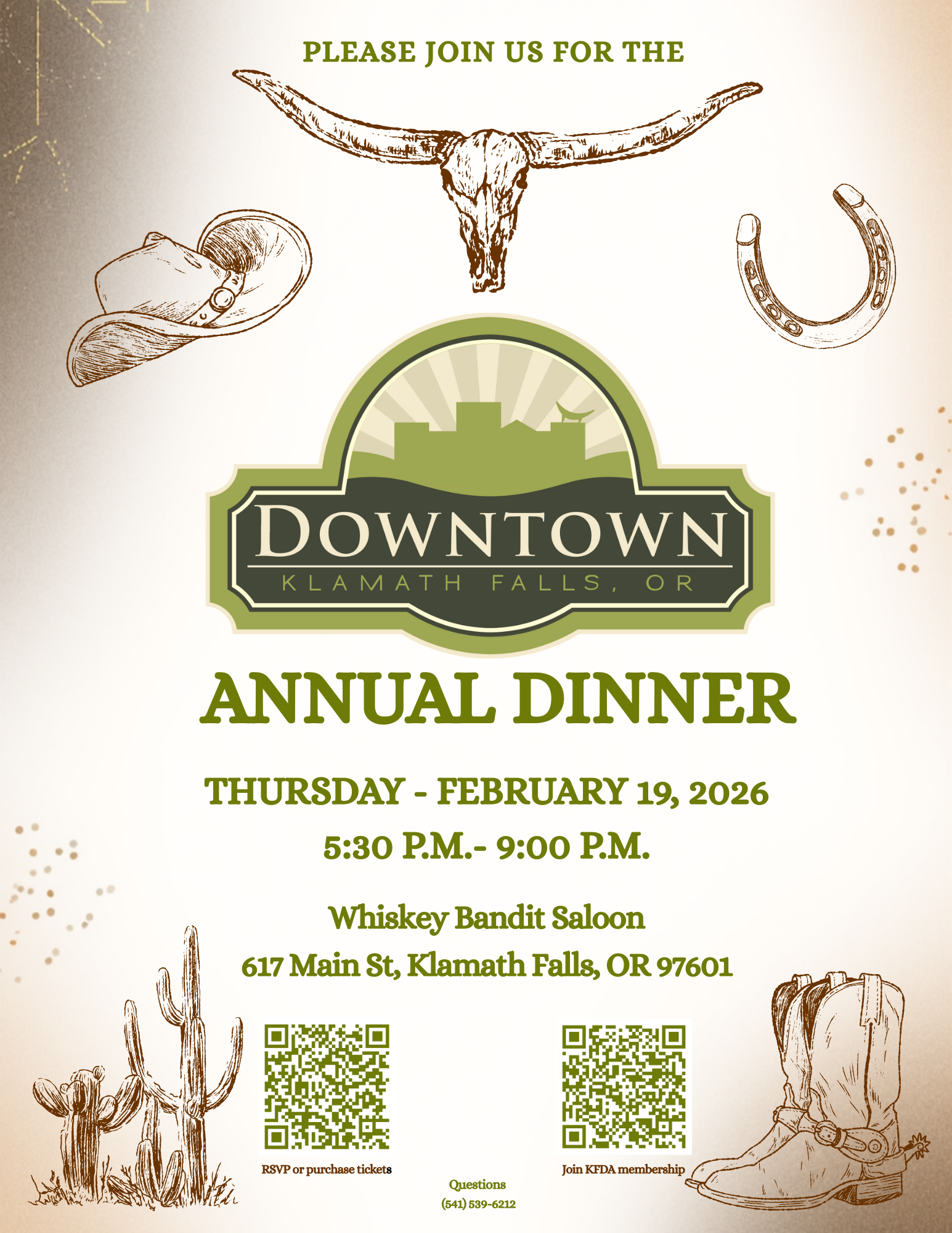 Join us for a night of celebration, connection, and downtown fun at KFDA’s Annual Dinner on February 19 at 5:30 PM at the Whiskey Bandit Saloon. This lively evening will include dinner, awards, a 50/50 raffle, a silent auction, karaoke, and even a few new surprises we’re excited to introduce this year!