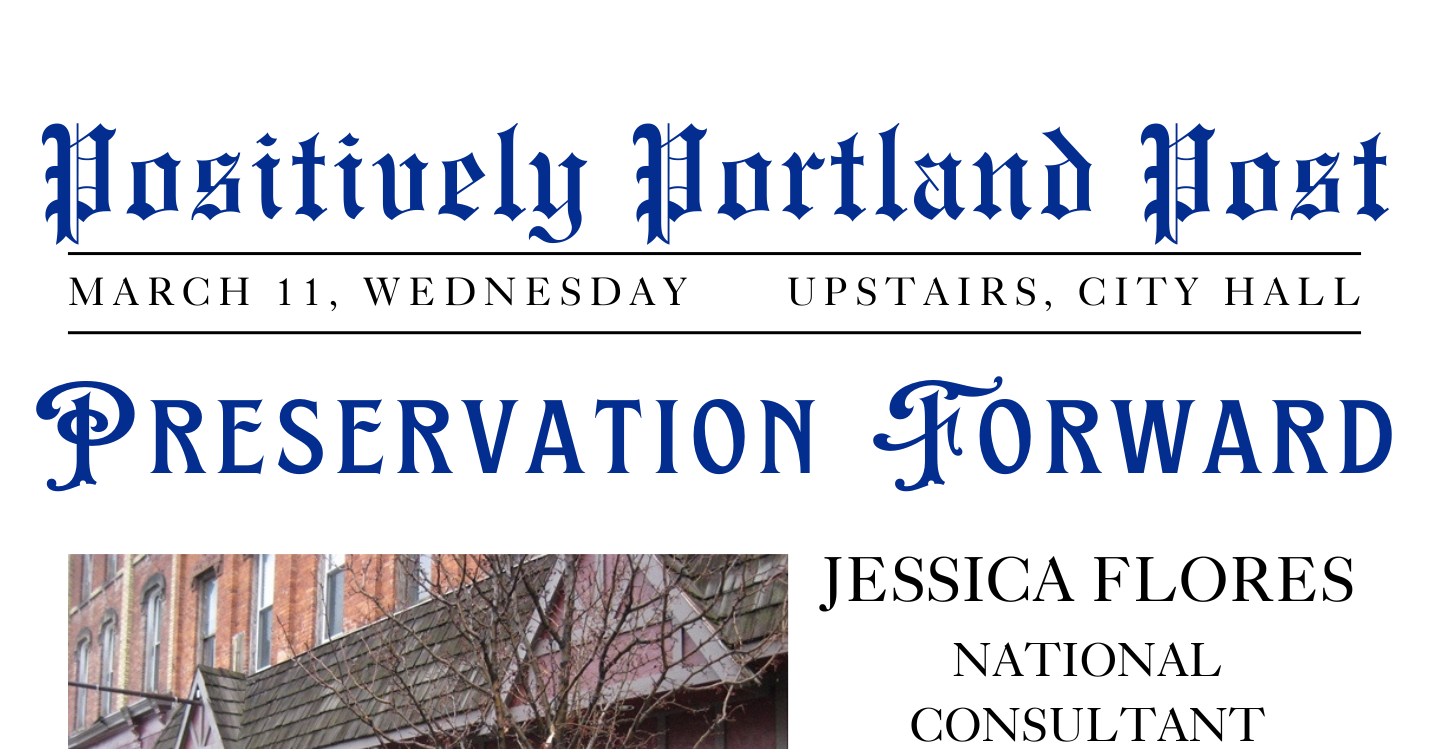 Wednesday, March 11 — Preservation Forward with Jessica Flores, national presenter to historic downtowns.