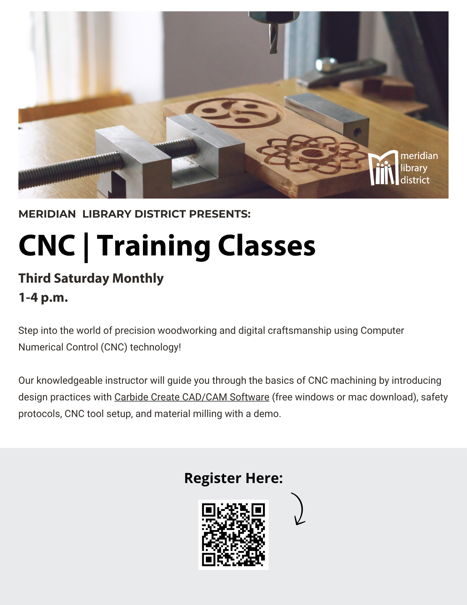 Upon completing this training, participants will be eligible to attend an advanced session, or reserve the CNC machine for personal use.