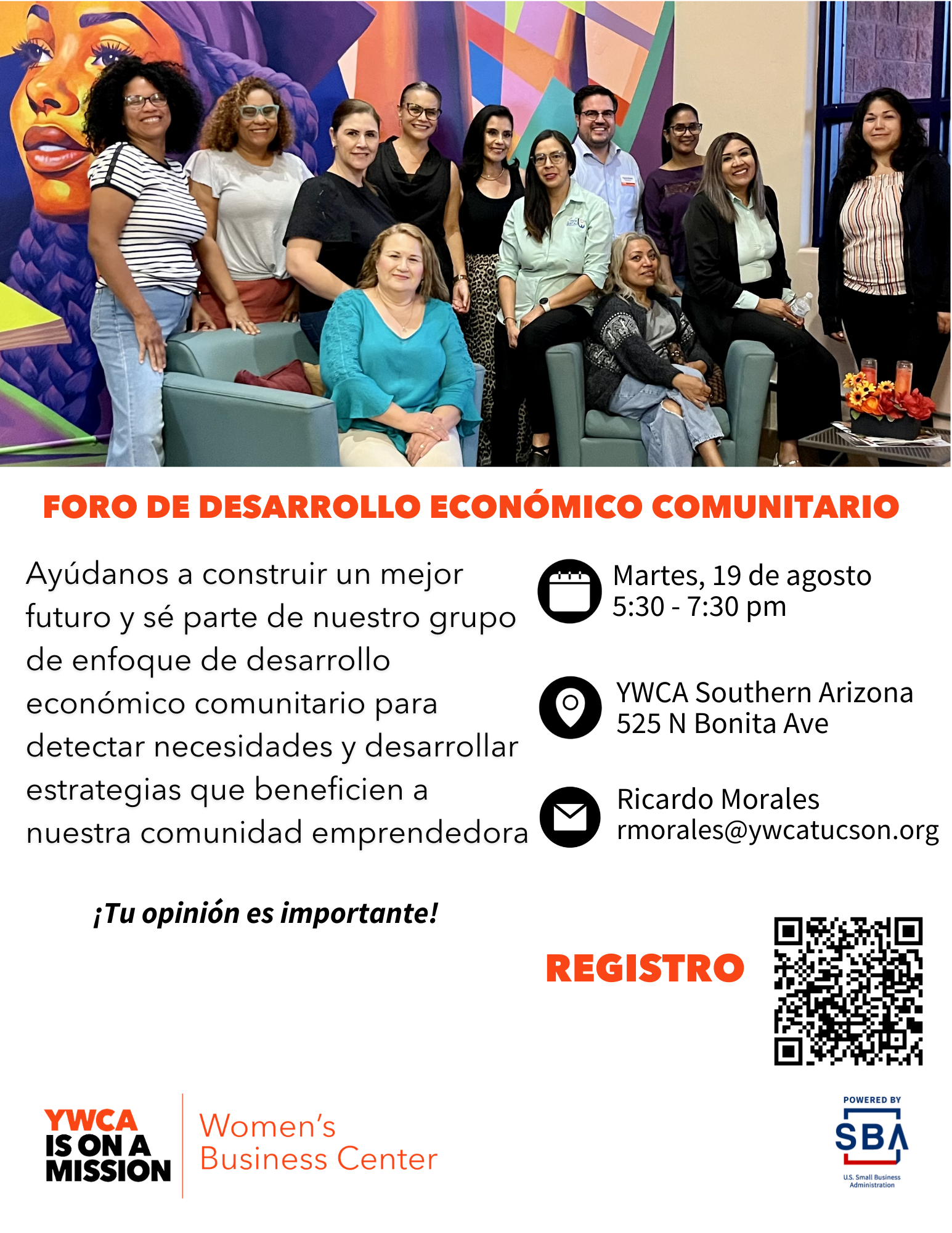 Ayúdanos a construir un mejor futuro y sé parte de nuestro grupo de enfoque de desarrollo económico comunitario para detectar necesidades y desarrollar estrategias que beneficien a nuestra comunidad emprendedora.
