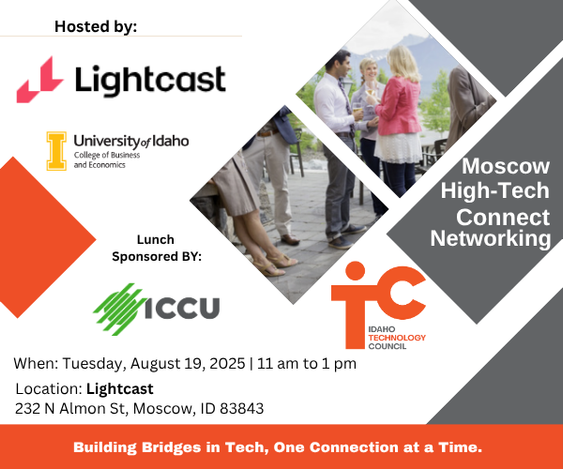 You are Invited to attend the first High-Tech Connect event in North Idaho, hosted by ITC Industry Investors, Lightcast and ICCU in partnership with the University of Idaho. We invite all tech professionals, tech companies, tech startups, tech investors, stakeholders, and tech enthusiasts to attend and join the conversation around the growing Idaho tech ecosystem in North Idaho. This event is free to attend but you must register as seats are limited.