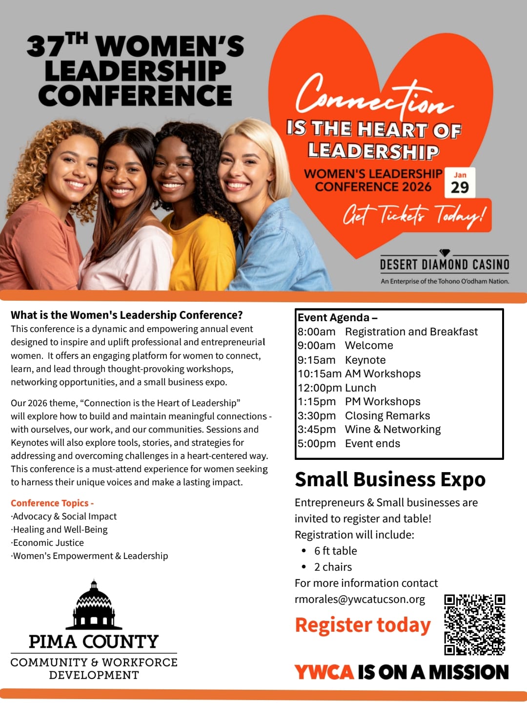 Join us as we Celebrate 37 years, of the YWCA’s Women's Leadership Conference Southern Arizona’s premier event for leadership development and networking among entrepreneurs, professional women, and featuring our vibrant Business Expo showcasing local women-owned businesses.