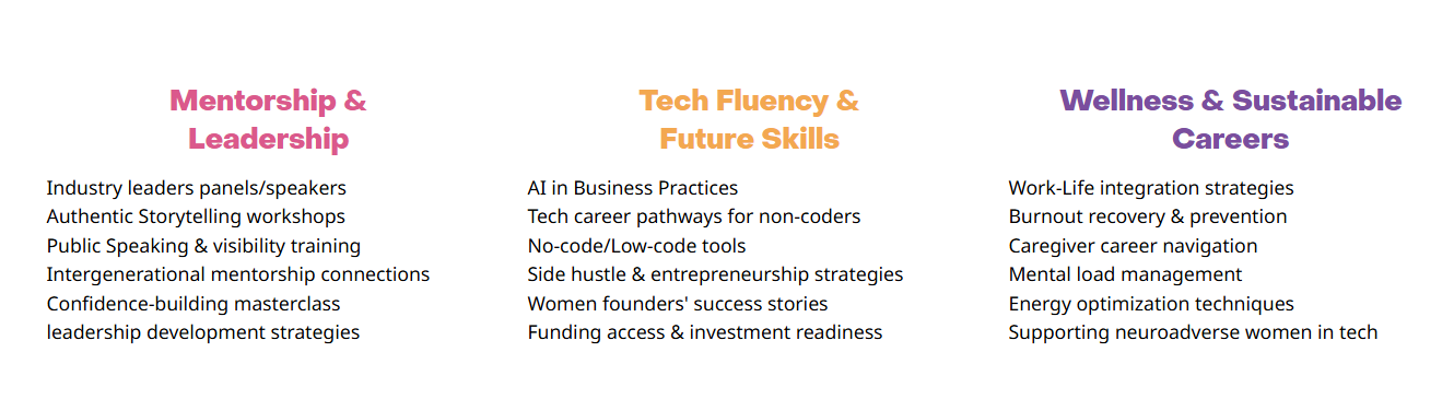 We are seeking visionary leaders, changemakers, and innovators to take the stage at the inaugural WiTECH Summit 2025. This is your opportunity to shape conversations, share expertise, and inspire the next generation of women in technology. Our summit is designed around the following 3 pillars: